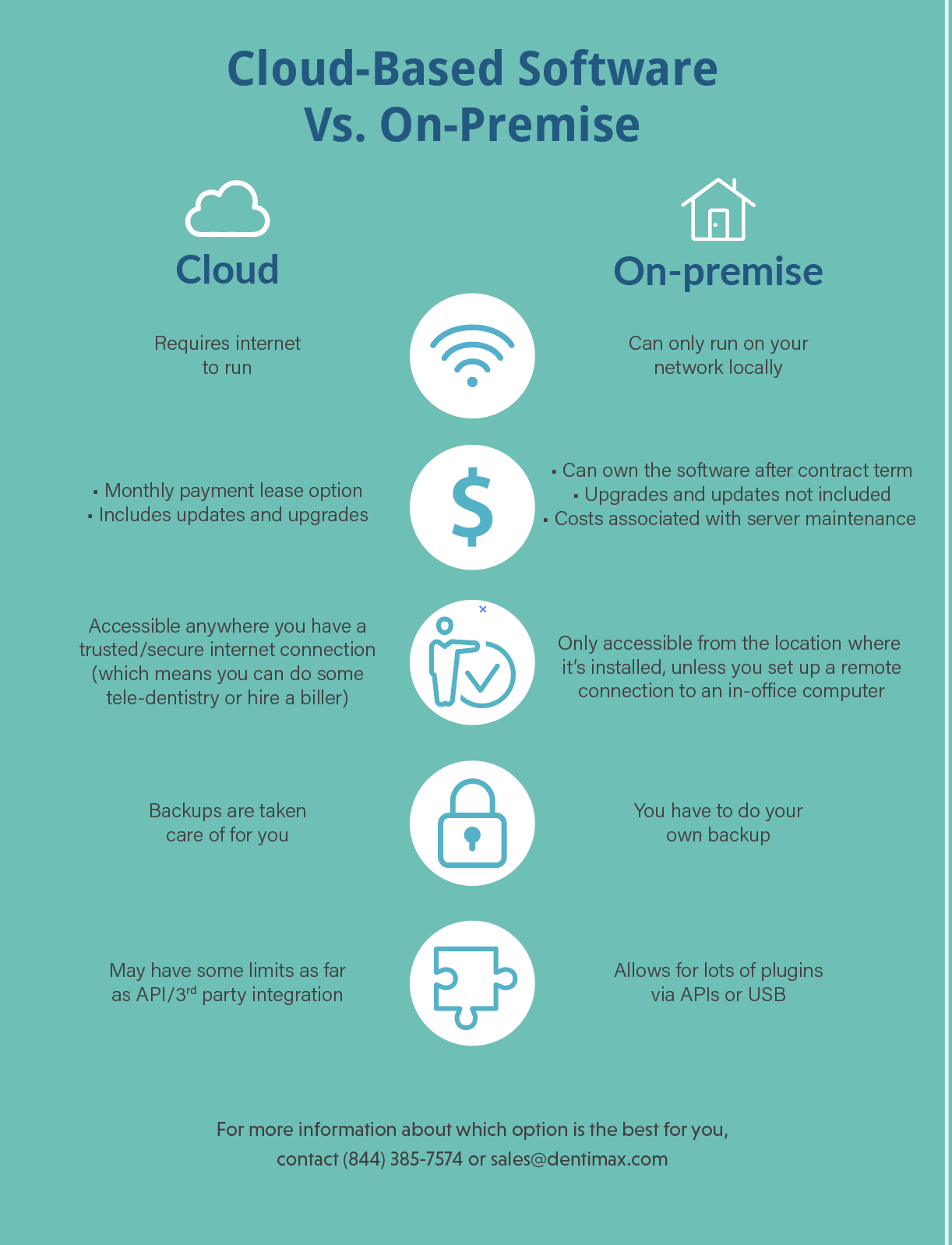 Another point for practices to consider involves what integrations you will need. In other words, what APIs will work with the software? Cloud based dental software may have some limits as far as API or 3rd party integration is concerned while on-premise may have more advanced integration capabilities.